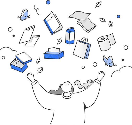 年間のCO2削減は約2,380t(新品紙と比較)、ほかにも地域との協創活動や学生との協働プロジェクトを推進しています。私たちのサステナブルな取り組みをご紹介します。